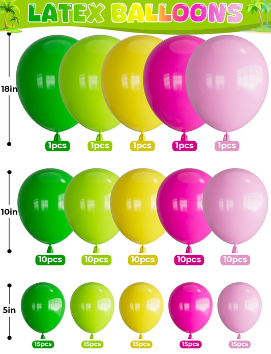 133 Pcs Tropical Balloons Arch Garland Kit, Sun/Pineapple/Flamingo Foil Balloon with Green/Pink/Yellow Latex Luau Balloons Arch, for Hawaiian Luau Aloha Summer Beach Party, Flamingo Pool Party Decor