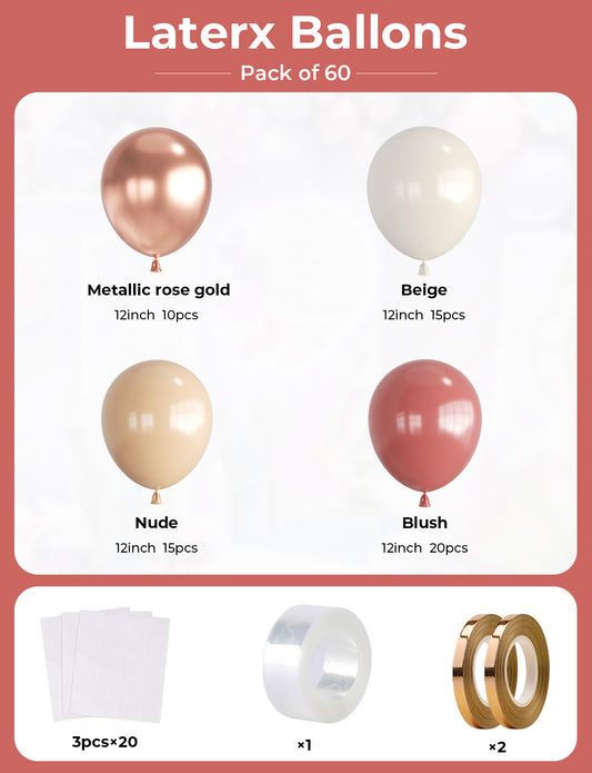 Allswt Retro Blush Pink Balloons,12 Inch 60pcs Rose Gold Balloons,Peach Dusty Pink Balloons for Birthday Baby Shower Graduation Wedding Mother's Day Party Decorations