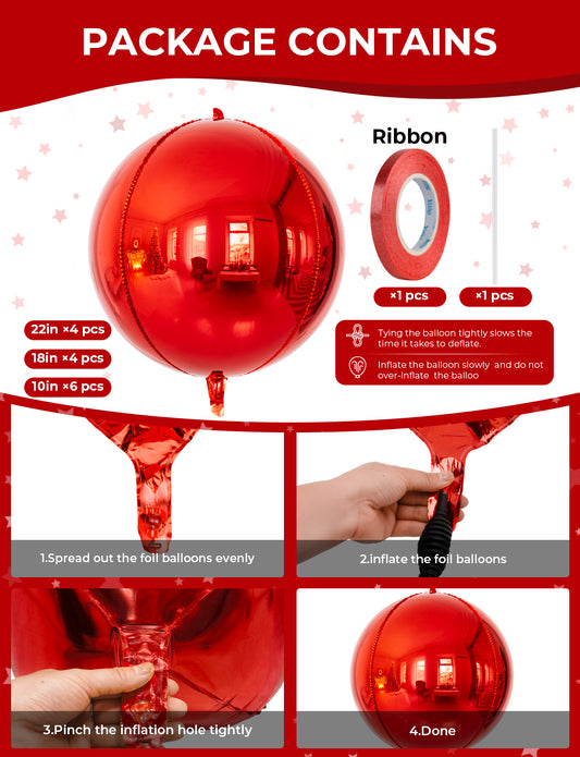 14PCS Red Foil Balloons Set - 22/18/10 Inch 4D Round Metallic Red Mylar Balloons for Birthdays, Weddings, Valentines, Graduation Party Decorations