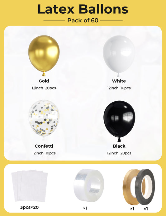 12 Inch Black and Gold Balloons,60pcs Black White and Gold Confetti Balloons,Black and Gold Latex Balloons for Graduation Birthday Baby Shower Wedding Party Decorations