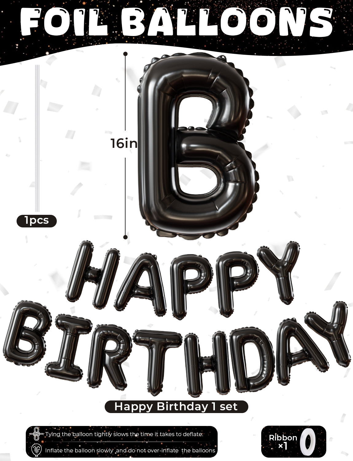 【Black Happy Birthday Balloons Decorations 】Our black happy birthday foil balloons set includes 13 pcs "HAPPY BIRTHDAY" banner balloons, a convenient straw for inflation and 1 ribbon. Each mylar letter balloons of the black happy birthday letter balloons measures approximately 16 inches, perfect for creating memorable moments at your unique birthday celebration with family and friends.