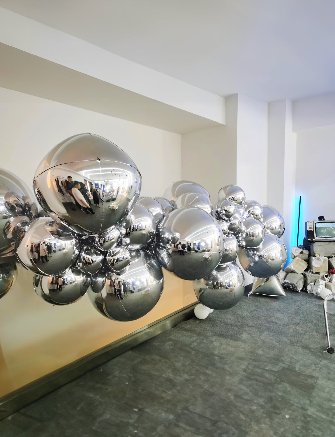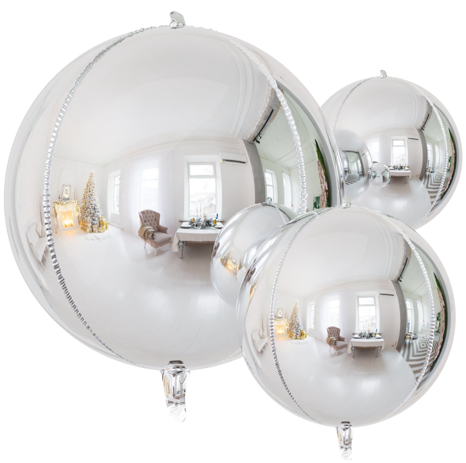 The large 4D round helium balloons have a shimmering chrome finish, adding a luxurious touch to your wedding, baby shower, birthday party, or any celebration.