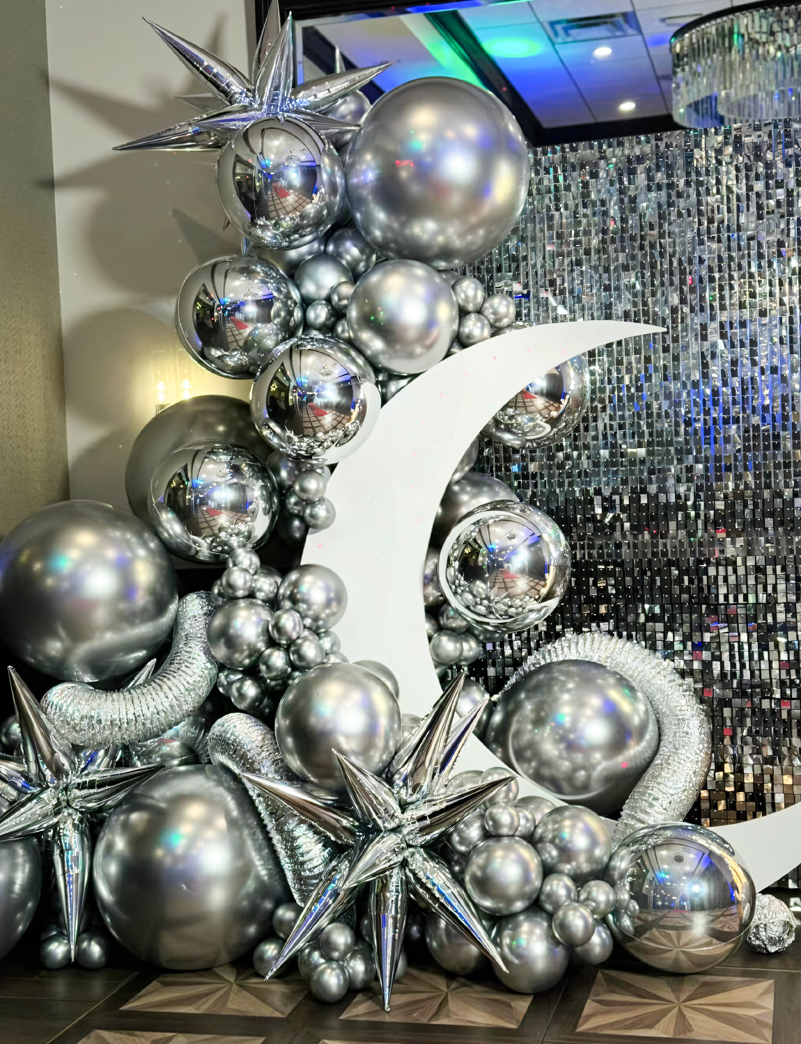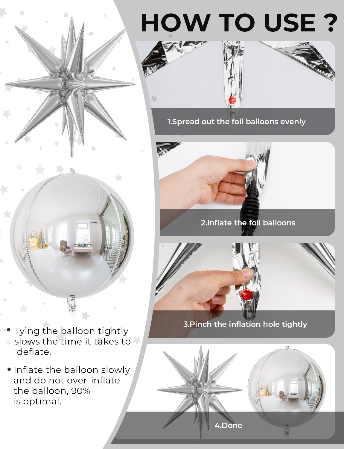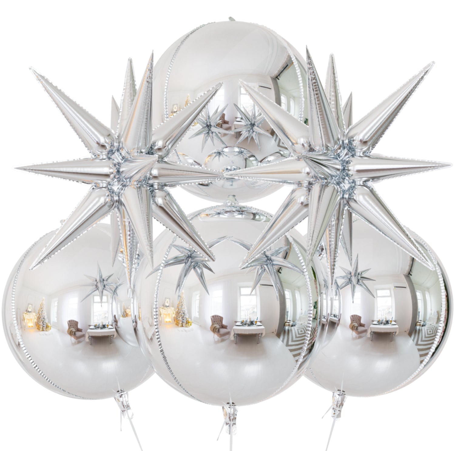 These stunning metallic silver balloons feature an eye-catching spike explosion star design, creating a captivating 4D effect. Perfect for Christmas, New Year's, birthdays, or any festive occasion, these large mylar chrome balloons add a touch of elegance and glamour.