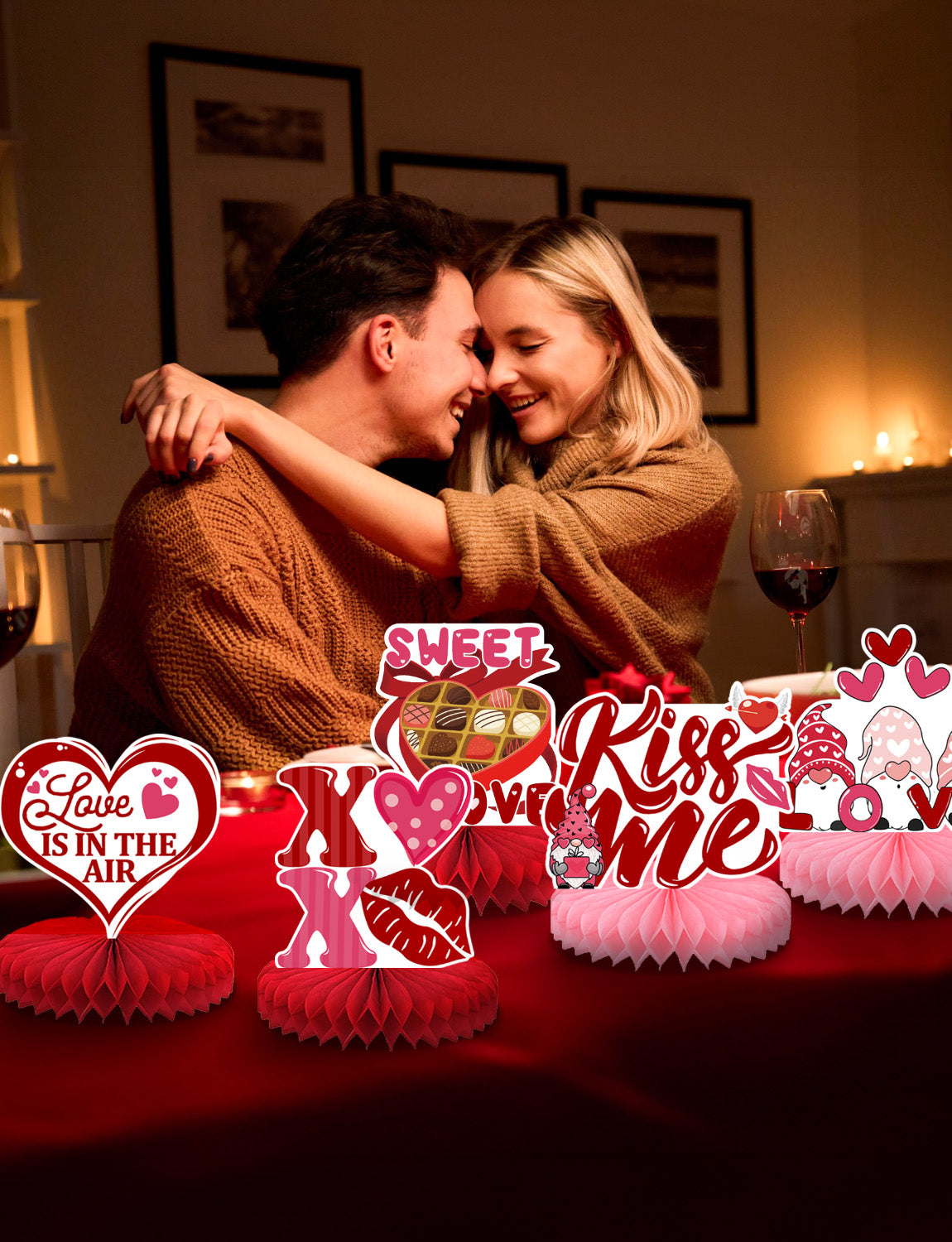 Haolongfa Valentines Day Table Decorations, 9 Pcs Valentines Centerpieces for Tables, Bear Heart Valentine Honeycomb Centerpieces Red Pink Valentine Table Centerpiece for Valentines Day Decorations