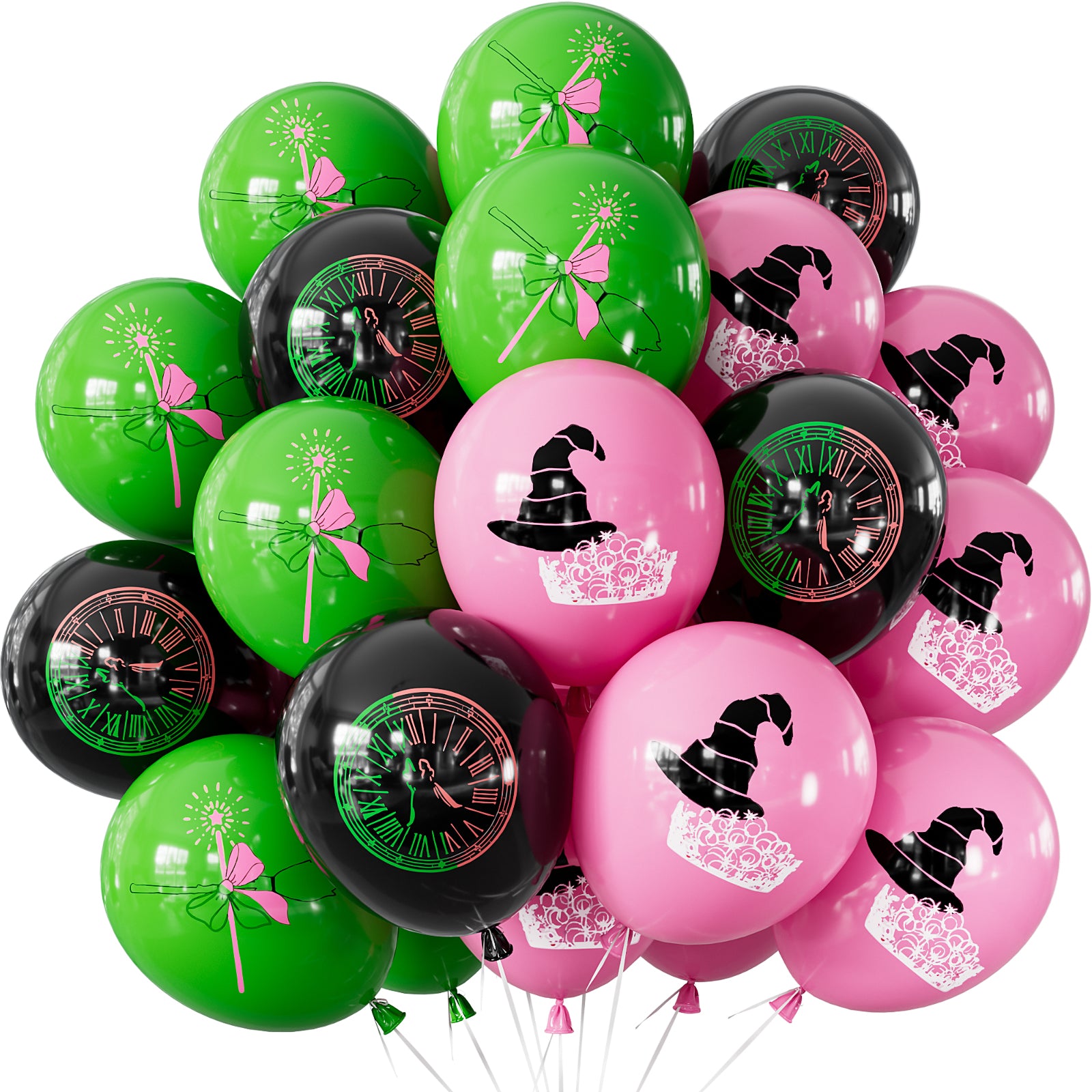 Haolongfa Wicked Balloons Set - 12 Inch Pink Green and Black Balloons with Spellbinding Witch Prints, Latex Halloween Balloon for Birthday, Cosplay, Magic Party, Theater, Kids Witch Themed Party