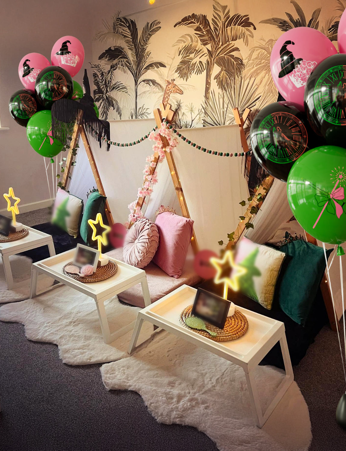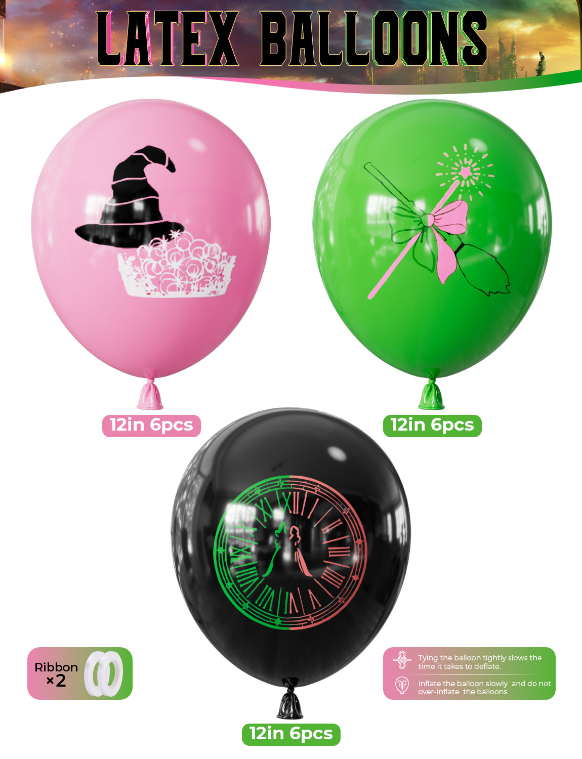 - 【Wicked Balloons for a Magical Party Scene】 Designed for atmosphere lovers, these wicked balloon set feature exclusive witch themed prints with mystical pink, green, and black color balloons. Just a simple bouquet instantly transforms photo walls, dessert tables, or entryways into magical, high-end focal points—no need for cluttered decoration.